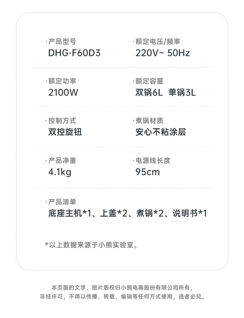 小熊料理锅DHG-F60D3