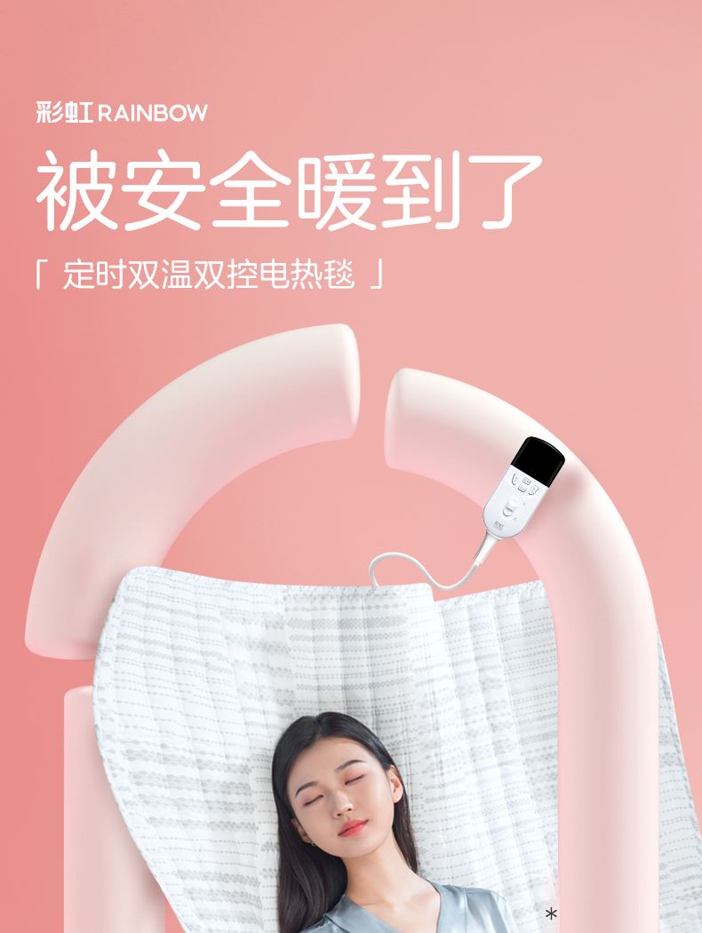 彩虹1558双控双温定时纯棉双人电热毯1.8*1.5